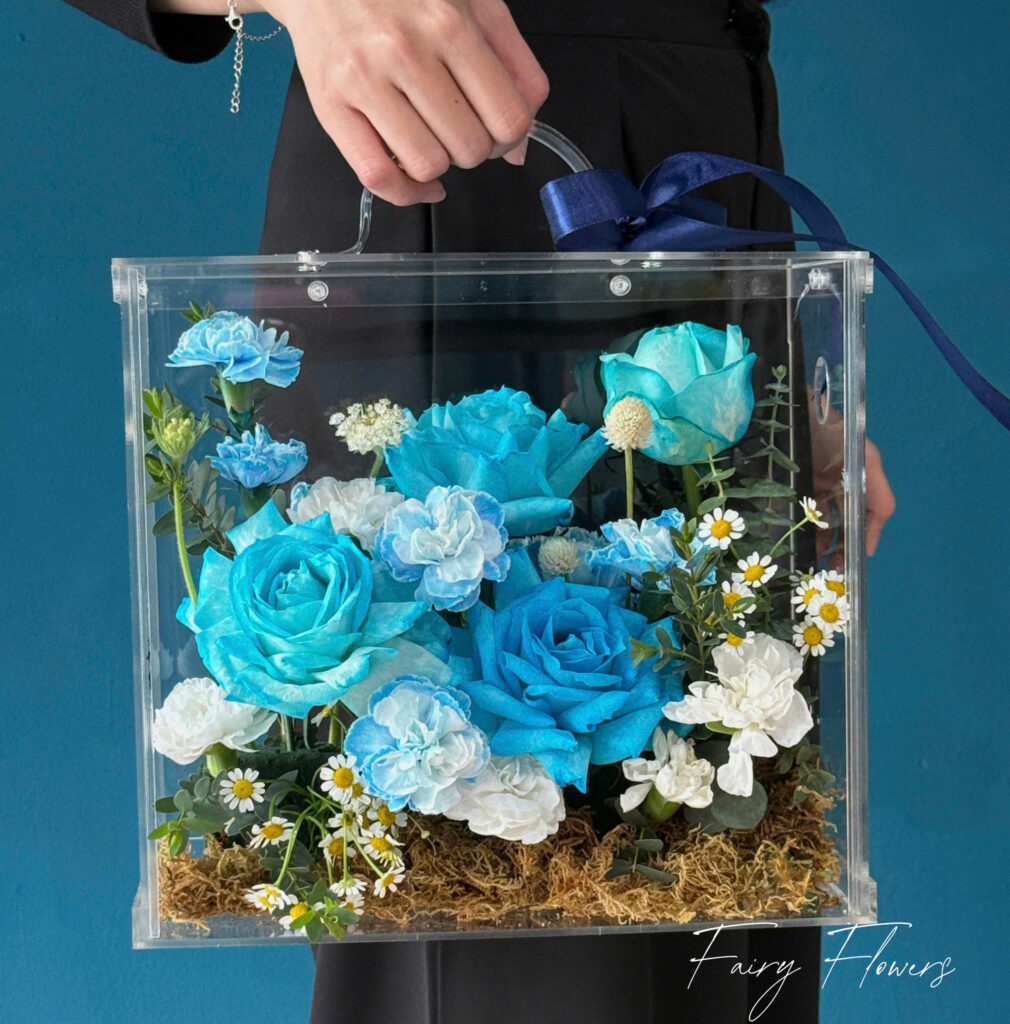 💙 Hộp Mica Hoa Hồng Xanh – Tinh Tế, Sang Trọng Và Bí Ẩn – Fairy Flowers