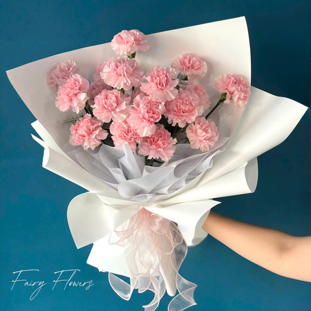 Fairy Flowers thiết kế mỗi bó hoa như một tác phẩm nghệ thuật – nơi từng cánh cẩm chướng được lựa chọn kỹ lưỡng, bung nở đều và phối hợp tinh tế cùng các phụ kiện hiện đại, tạo nên một bó hoa vừa trang nhã, vừa sang trọng. Đây là món quà đầy cảm xúc cho mẹ, cô giáo, bạn gái, đồng nghiệp – những người phụ nữ luôn âm thầm đồng hành và nâng đỡ bạn trong cuộc sống.