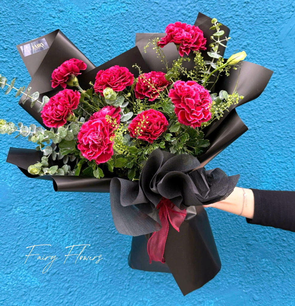 Với sắc đỏ rực rỡ và đầy cảm xúc, bó hoa cẩm chướng màu đỏ từ Fairy Flowers là món quà mang đậm thông điệp của tình yêu nồng cháy, sự ngưỡng mộ và lòng biết ơn sâu sắc. Mỗi cánh hoa mềm mại như lời thì thầm dịu dàng, nhưng mạnh mẽ trong cách thể hiện cảm xúc chân thành.
