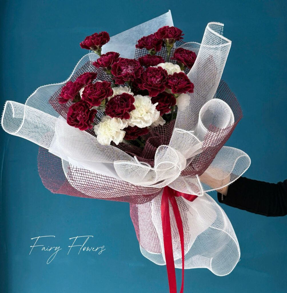 Bó Hoa Cẩm Chướng Mix Màu Đỏ và Trắng – Tình Yêu Và Sự Thanh Khiết Từ Fairy Flowers