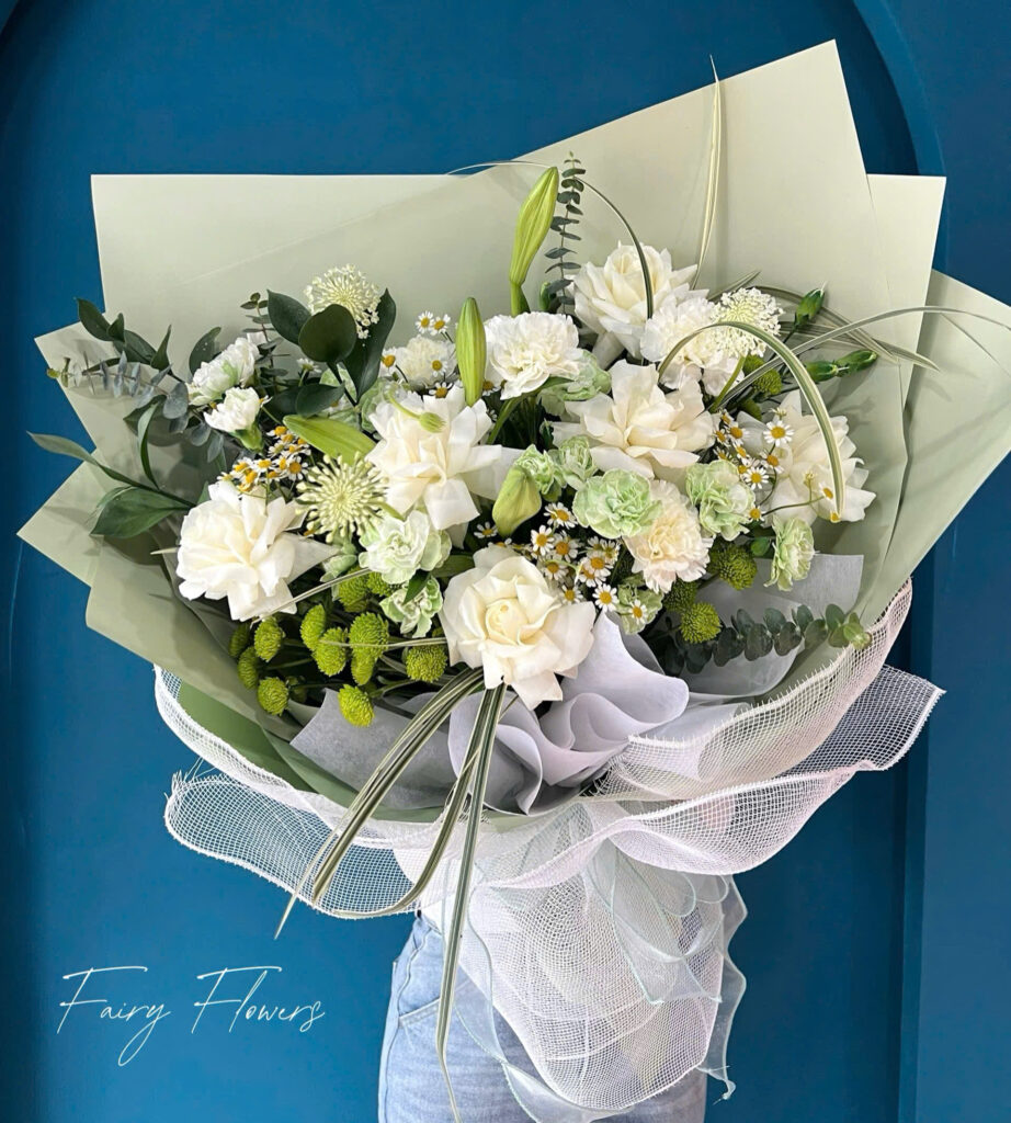 Fairy Flowers giới thiệu bó hoa phối màu độc đáo: hoa hồng – đại diện cho tình yêu và đam mê, kết hợp cùng cẩm chướng – biểu tượng của sự trân trọng và cảm mến. Sự pha trộn màu sắc nhẹ nhàng đến nổi bật tạo nên một bó hoa vừa rực rỡ, vừa thanh lịch, phù hợp với mọi độ tuổi và mọi dịp.