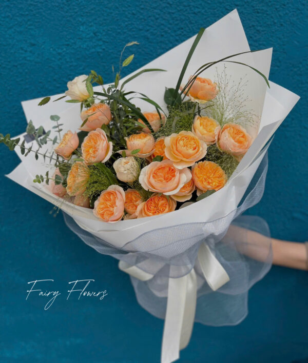 Khi bạn muốn gửi gắm một lời chúc rạng rỡ, tích cực nhưng không kém phần tinh tế, bó hoa hồng màu cam từ Fairy Flowers sẽ là lựa chọn lý tưởng. Màu cam – sắc màu của ánh nắng ban mai và mùa thu dịu ngọt – đại diện cho niềm tin, sự khích lệ và lòng biết ơn chân thành.