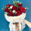 Bó hoa được thiết kế tinh tế với tone giấy nude – đỏ – đen hoặc kem sữa sang trọng, kết hợp cùng baby trắng, lá bạc hoặc cúc tana nhẹ nhàng, tạo nên một bản hòa tấu lãng mạn đầy ý nghĩa.