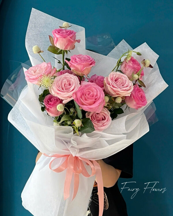 Bó hoa hồng màu hồng từ Fairy Flowers là sự kết hợp hoàn hảo giữa vẻ đẹp ngọt ngàotinh tế, mang đến một thông điệp tình yêu đầy lãng mạn và tươi mới. Với sắc hồng nhẹ nhàng, dịu dàng, những bông hồng trong bó hoa đều được lựa chọn kỹ càng, mang đến vẻ đẹp tựa như những khoảnh khắc yêu thương thuần khiết.