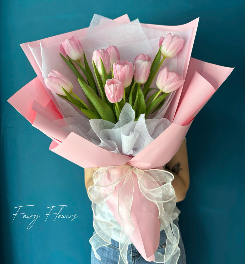 🌷✨ Bó Hoa Tulip Màu Hồng Cao Cấp – Sự Sang Trọng Và Lãng Mạn Từ Fairy Flowers