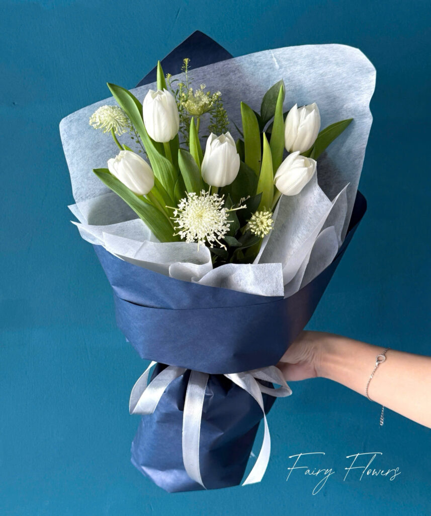 🌷🤍 Bó Hoa Tulip Màu Trắng – Vẻ Đẹp Tinh Khiết Và Trang Nhã Từ Fairy Flowers