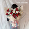 Hoa chính: Hoa hồng đỏ nhung – biểu tượng của tình yêu mãnh liệt.