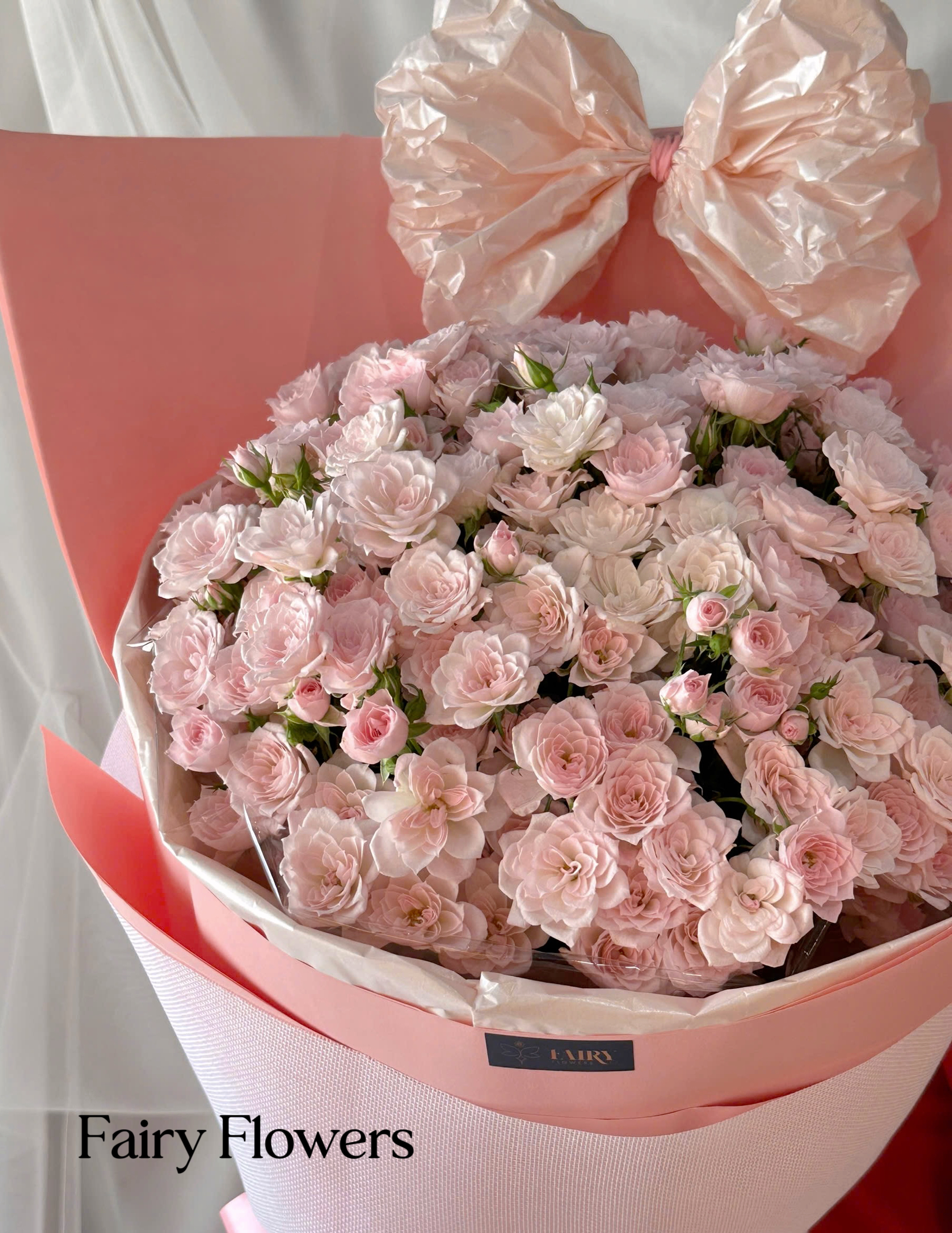 • Hoa chính: Hồng baby pastel (spray rose) – biểu tượng của tình yêu nhẹ nhàng, sự quan tâm và nét đẹp trong sáng.