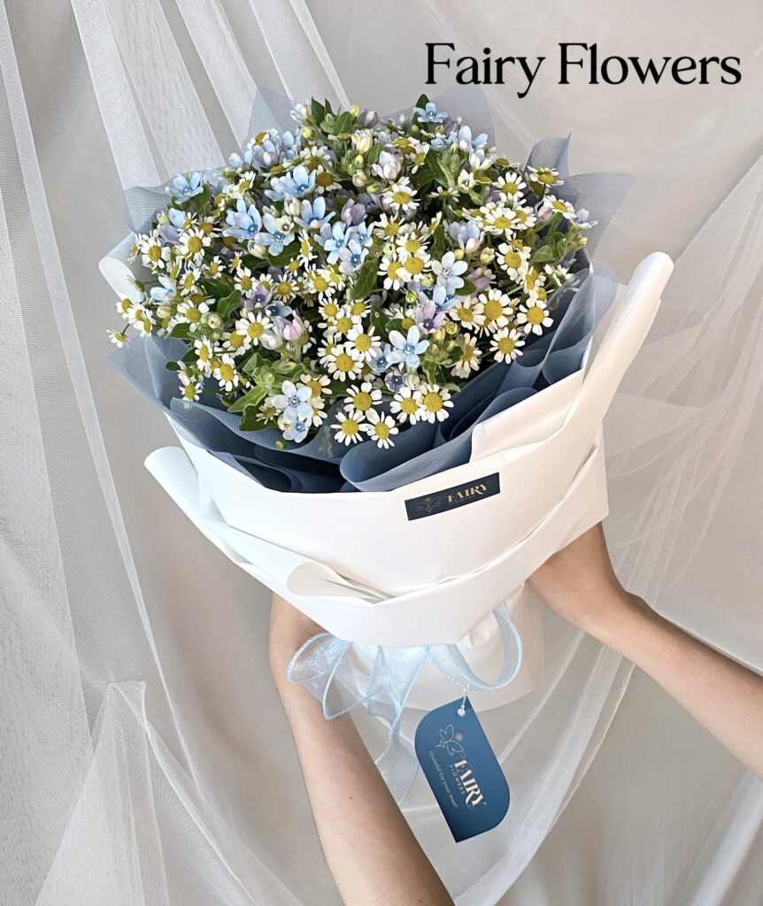 💙 Bó Hoa Sao Xanh & Cúc Họa Mi – Nhẹ Nhàng Như Một Lời Chào Ngày Mới
