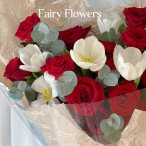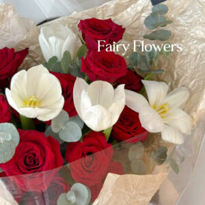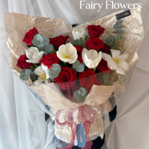 🌹 Bó Hoa Hồng Đỏ & Tulip Trắng – Lãng Mạn Và Tinh Khôi