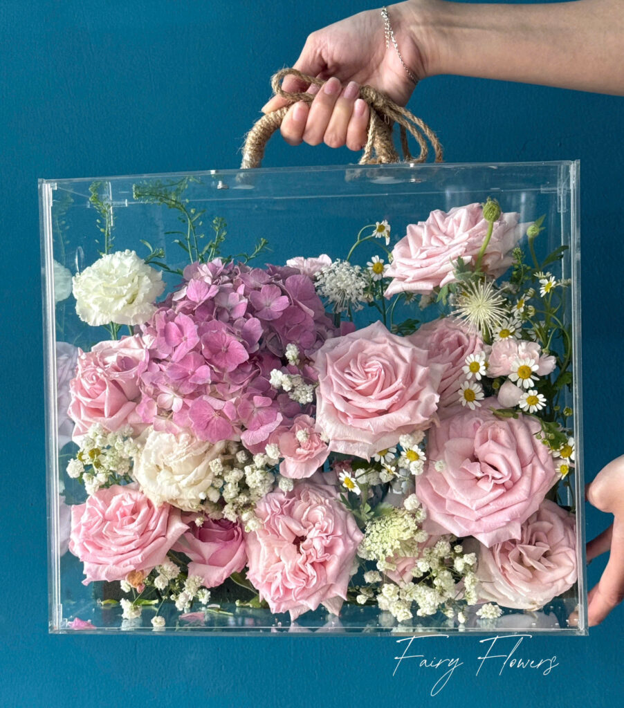 💖 Hộp Mica Hoa Hồng & Cẩm Tú Cầu Màu Hồng – Thanh Lịch, Dịu Dàng và Tràn Đầy Tình Cảm – Fairy Flowers