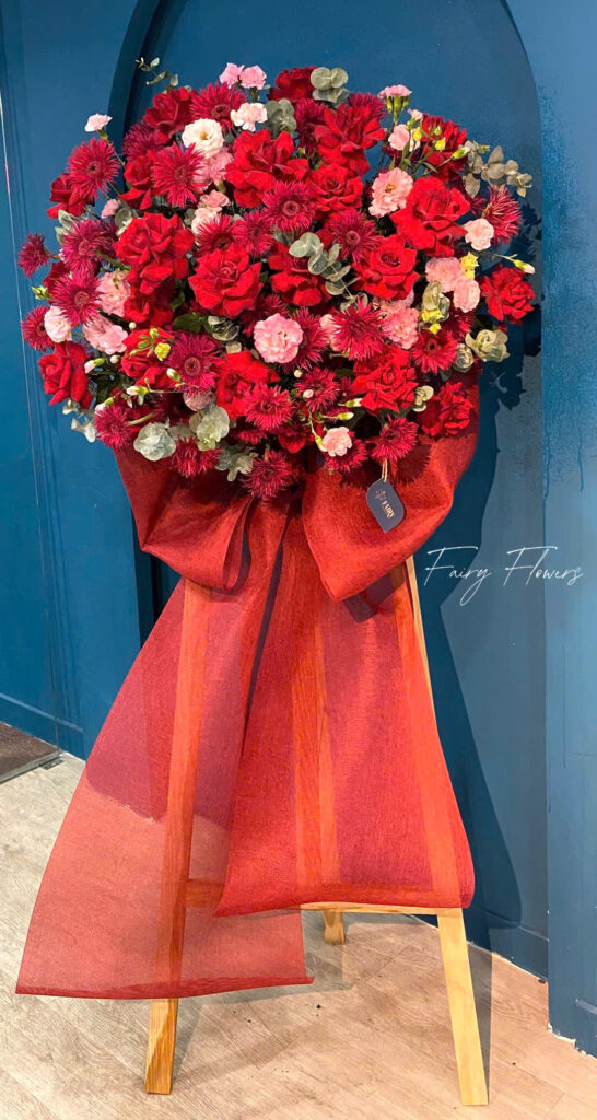 Kệ hoa hồng và cẩm chướng màu đỏ từ Fairy Flowers là sự kết hợp hoàn hảo giữa hoa hồng đỏ – biểu tượng của tình yêu nồng cháy và cẩm chướng đỏ – thể hiện sự ngưỡng mộ và tôn trọng. Đây là món quà tuyệt vời để thể hiện tình cảm sâu sắc và trân trọng đối với người nhận, đặc biệt là trong những dịp đặc biệt như sinh nhật, kỷ niệm, lễ tình nhân hoặc các sự kiện quan trọng.