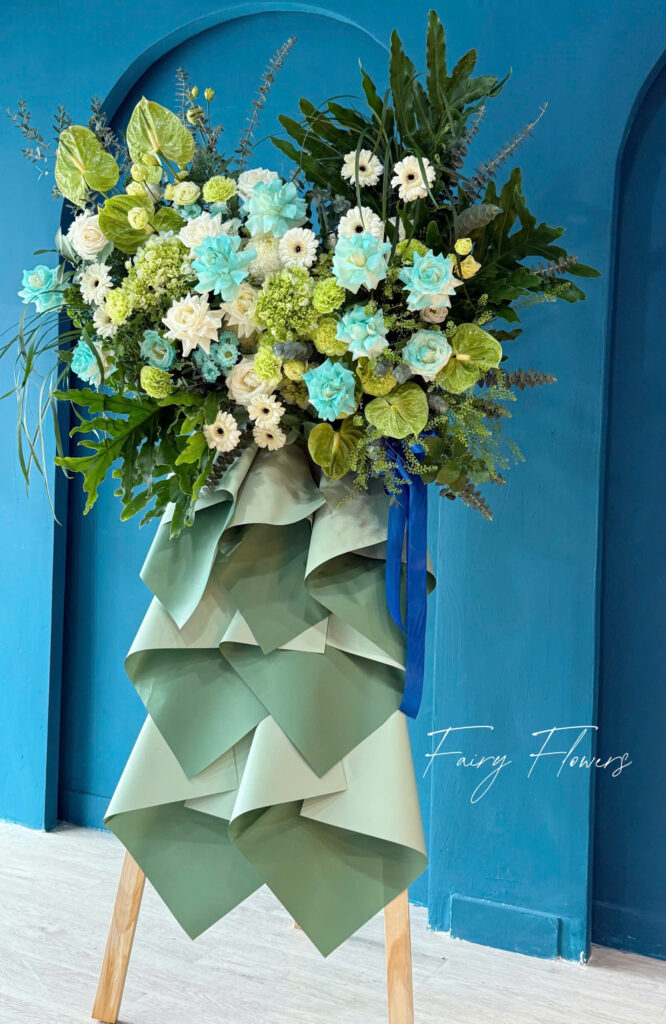 Kệ hoa hồng, cẩm tú cầu và đồng tiền màu xanh từ Fairy Flowers là một sản phẩm tuyệt vời kết hợp giữa sự thanh lịch và tươi mới. Với sự kết hợp hài hòa giữa hoa hồng lãng mạn, cẩm tú cầu thanh thoát và đồng tiền tươi sáng, sản phẩm này mang đến một không gian sống động và tràn đầy sức sống, phù hợp cho mọi dịp đặc biệt.